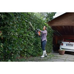 Dwustronne nożyce do żywopłotu o pojemności 21,7 cm 3 z listwą tnącą o długości 60 cm. Wielopozycyjny uchwyt i imponująco niska waga w połączeniu ze smukłą, zrównoważoną konstrukcją i niskim poziomem wibracji zapewniają doskonałą obsługę, a wysoko wydajne profesjonalne ostrza, otwarta osłona tarczy i duża moc wyjściowa zapewniają doskonałą wydajność cięcia.