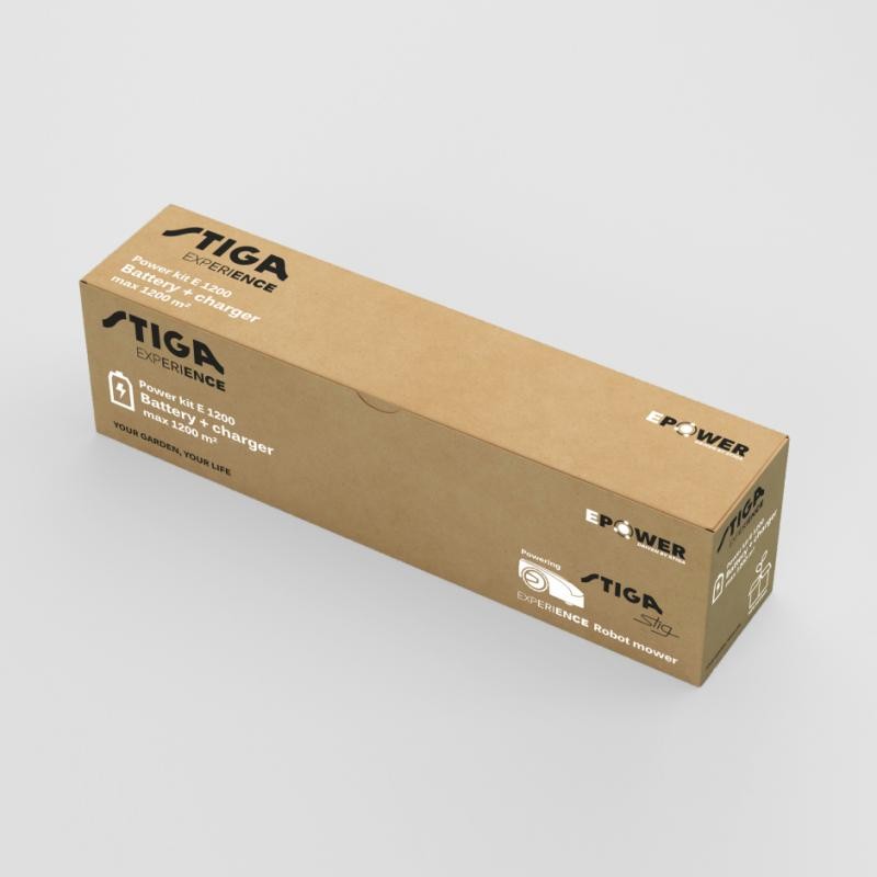 Zestaw zasilający STIGA do robota koszącego Stig. Zawiera baterię i ładowarkę. Dzięki tej baterii robot może kosić trawniki o powierzchni do 1200 m2.